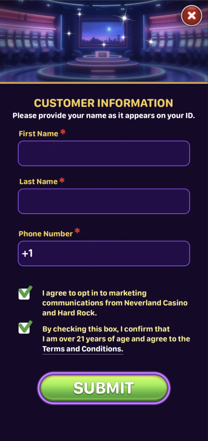 From here you can enter your details to register for Hard Rock Games Giveaways!