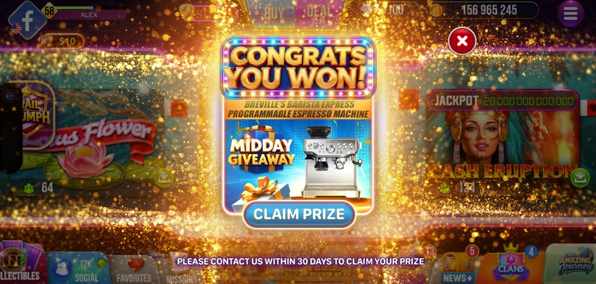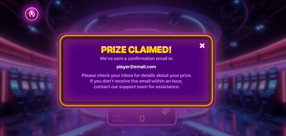 If you've won one of our great Hard Rock Games Giveaways you'll be prompted in game through our Giveaways Widget to claim your prize.