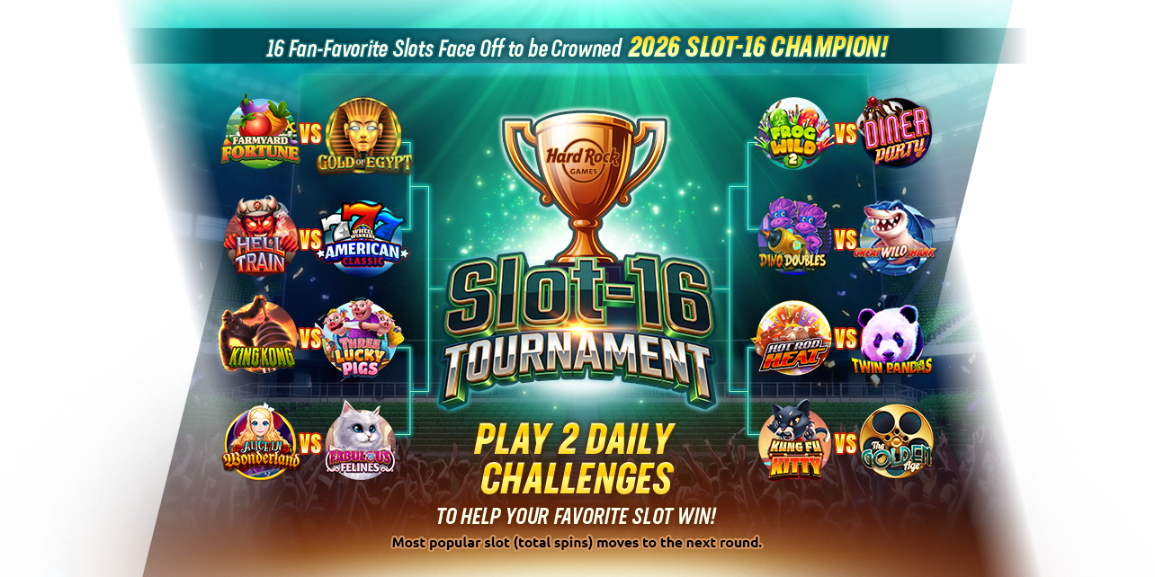 We’re kicking off our first-ever Slot‑16 Tournament; a head‑to‑head showdown between 16 fan-favorite slots. Only one slot will be crowned the 2026 Champion, and your spins decide the winner.