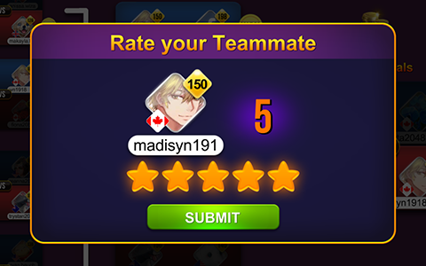 TIP: Be honest and fair with your ratings, even if you didn’t win. If you feel that your teammate was actively helping, reward them with a good star rating!